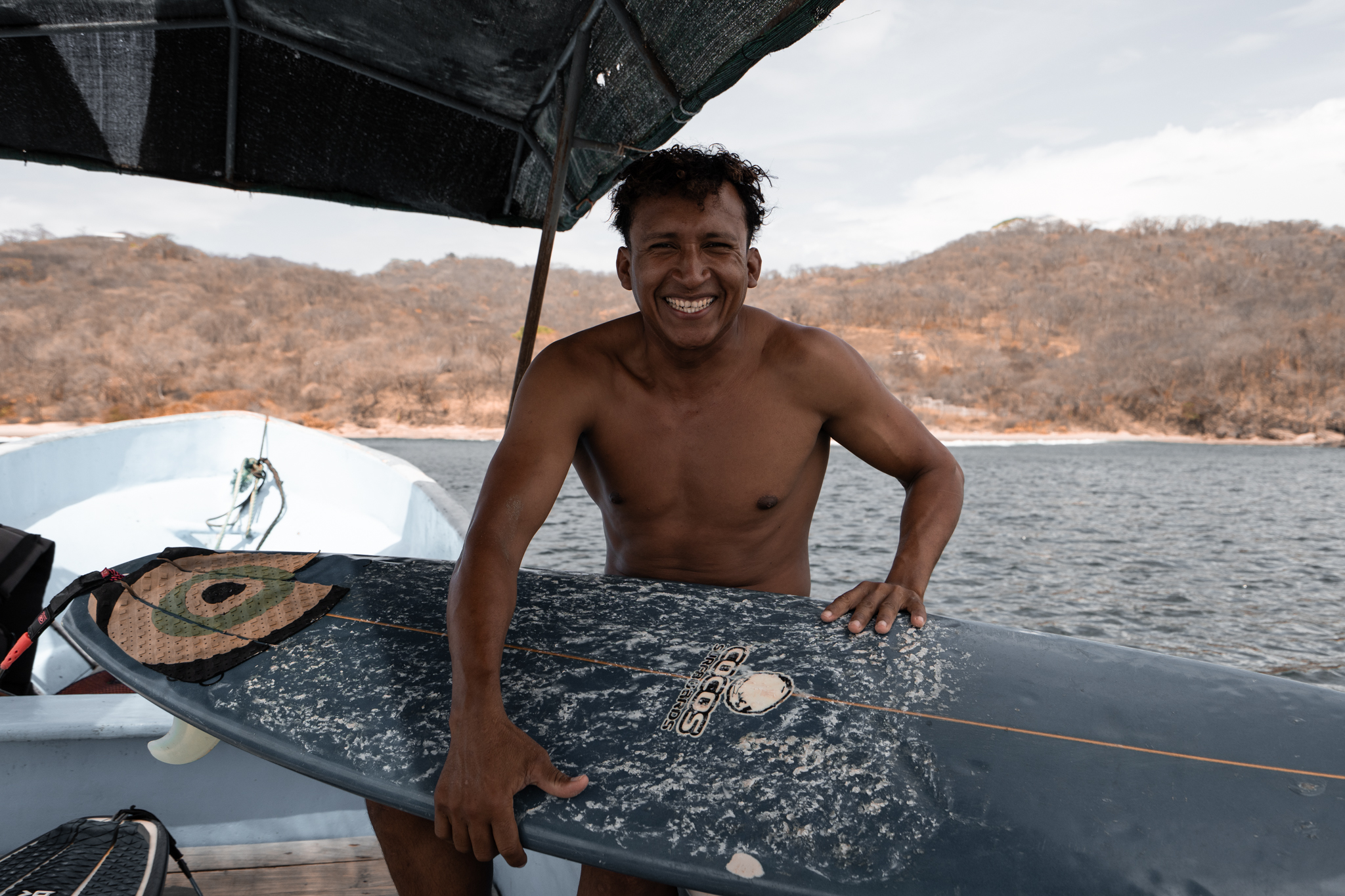 Alex was eager to take us out to a local-only surf spot known as “Yanke,” where he and his friends had enjoyed a successful session the previous day. Reviewing footage of the break on his phone, his eyes were glowing at the prospect of a repeat event. After enjoying some delicious fish tacos by the sea, we boarded his boat along with two of his close friends—Frankie and Carlos. Frankie, a sixteen-year-old who had recently lost his father, clearly looked up to Alex as a father. He was mentoring him in surfing, teaching him English, and involving him in the eco-tourism business that showcased their homeland. But today would be a little different than their usual surf excursions. Alex wanted Frankie to prove himself in the lineup with the dudes.