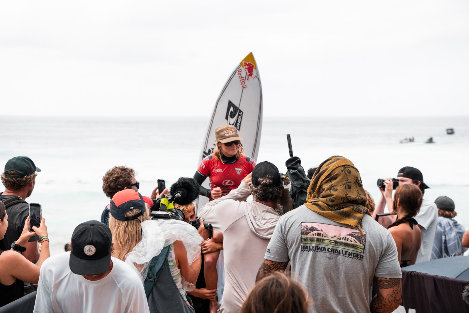 As the final heats got closer, the women’s elite were crushing barrels, getting perfect scores and sending the crowd that had tripled in size since 9am into roars. Decked in bathing suits, WSL merch and a ton of branded gear supporting their favorite athletes, the beach was jammed with the surf-obsessed, all here to be wowed by the talent, landscape and conditions alike.