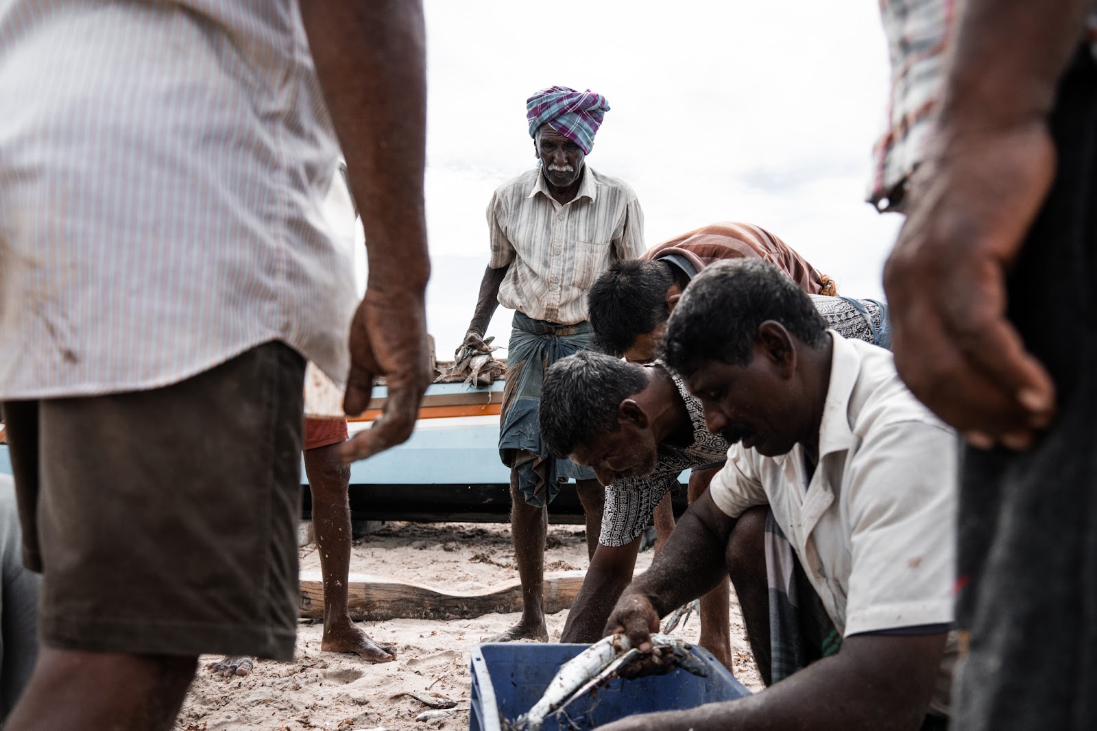 Venturing to another side of the Mannar peninsula, we left the traditional fisherman to see the commercial activity instead. Long gone were the sound of any rhythmic songs, the community feel and the warm welcomes. Here, it was clear the focus was all about the bottom line. In fact, we felt an immediate sense of distrust among these fishermen as to why we were even there, or what we might be trying to unearth. As we walked up and down the beach, it was clear we were unwelcome as outsiders.