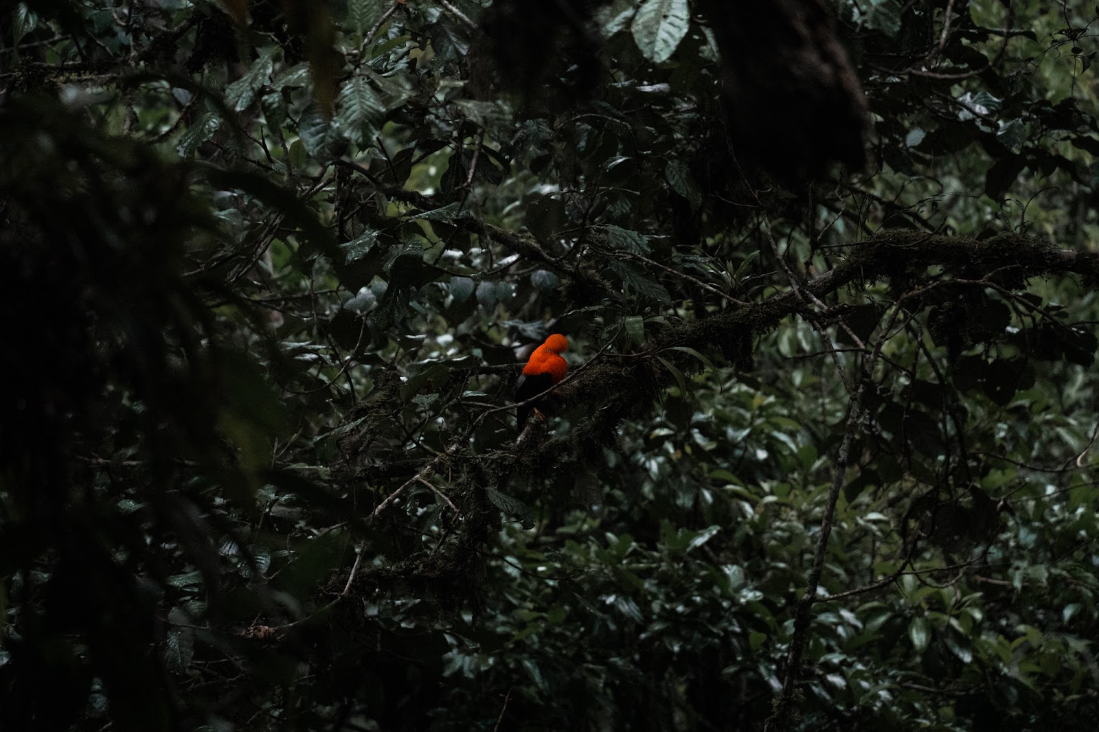 After that, a few more followed, all choosing their own branch to do their thing. One after another, these beautiful orange birds, resembling an odd relative of the rooster, were hanging in the area as well. We fully understood why people from all around the world come to the Amazon to see these special guys. The cock derives its name from its nesting habits on rocky ledges. These magnificent birds call the cloud forest their home, residing at elevations ranging from 500 to 2,400 meters (1,600 to 7,900 feet). Their diet primarily consists of fruits, insects, and occasionally small frogs and reptiles, with solitary foraging being the norm, although small groups can sometimes be spotted.