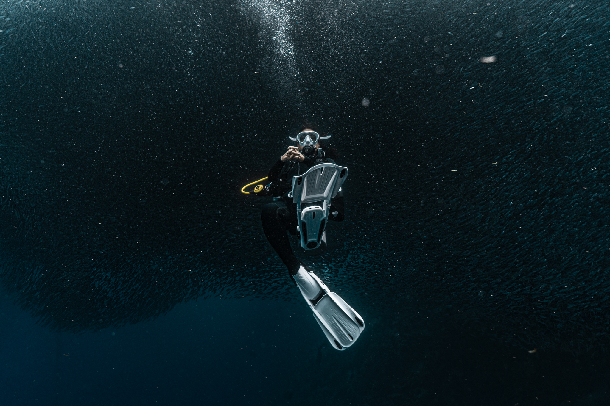 At times, it felt like we were caught in some elaborate flash mob, set in the middle of the ocean. The sardines blocked out the sunlight entirely, leaving us navigating with torches. You'd think we'd entered some ominous cave or stumbled upon an underwater eclipse. Nope, just a casual cloud of sardines turning day into night.